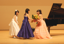 今日の曲目は、Chihiroちゃんが「ヘンデル:シャコンヌ ト短調」「グリンカ=バラキレフ:ひばり」、Sayakaちゃんが「シューマン:アラベスク ハ長調 Op.18」「シューベルト:即興曲 第4番 変イ長調 Op.90-4」、Yurikaが「リスト:リゴレット(演奏会用パラフレーズ)」「スクリャービン:ソナタ 第2番 嬰ト短調 Op.19 第2楽章」でした。休憩中、真由美先生、宮澤先生と少しお話し出来まして、(勿論、課題も色々あると思いますが)「それぞれの持ち味がいかんなく発揮された演奏でした!」との感想を頂いたようです。今日、出演した生徒達は、またこの受賞記念コンサートに出演出来るように、これからもっと貪欲に音楽を学び、強い意志を持って練習に励み、そして今迄以上にピアノを好きになって欲しいと思います。