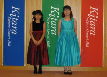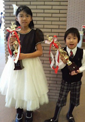 学コン初出場(小学校の部)のSちゃん(写真左)。出場していたお友達と一緒にKitara定番の場所で記念に♪ |