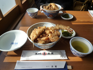 通りがかり、雑誌に載っていた天ぷら屋さんで紹介されていた上天丼を食べました。 |