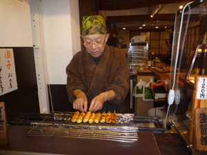 お団子屋さん。真由美先生はたれ、ワタクシは生醤油で焼いた団子、これがホント美味かった~! |