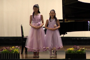 ↑ 姉妹でピアノ連弾を楽しく♪ |