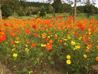 パン屋さんの後は、道の駅へ。野菜を少し買って、ソフトクリーム食べて。ワタクシは、マオイワイナリーの「やまぶどうロゼ」というのが面白そう(美味しそうでもあるけど、どんな味するか?面白そう)だったので買ってみました。そして、それから・・・何か二人とも千歳まで行くのも面倒になってきて、「家帰って休もう♪」になり(笑)。でもでも、急遽、何となく「ゆにガーデン」(由仁町の英国風庭園)に寄ってから帰ることに。さすがにこの時期ですからお花も多くはなく。コスモスなど少し種類だけ。周回バスに乗って、少しだけ観てまわり、それから帰路へ。今日は、そんな、何となく二人で近場をぶらりとしていた休日でした(*^^*)ァハ